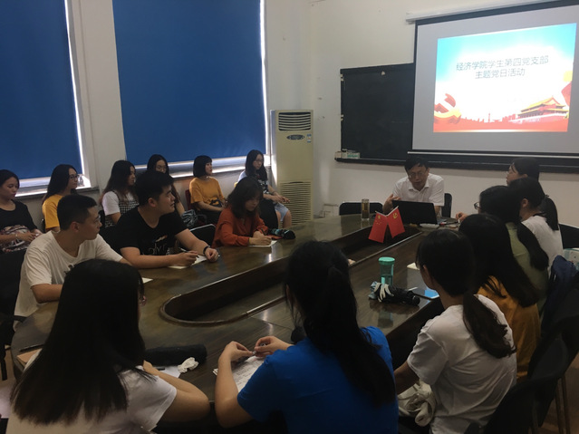 2019年6月21日在1教4010召开了经济学院学生第四党支部6月主题党日活动,大会共到场28人,其中12名正式党员,16名预备党员,会议由学生第四党支部书记王璇同志主持,并邀请经济学院副院长兰虹为支部党员讲党课,主题为“不忘初心,牢记使命”。兰院长从党的历史开讲,介绍了我党从成长到壮大的历程,并就当今国际政治局势的情况下,每一个党员同志要“不忘初心,牢记使命。特别是作为学生党员,最大的使命就是做好自己的本职工作,好好学习,不断增长自己的知识,提高和完善自己,从而能更好地为社会服务,发挥党员的先进模范作用。最后,兰院长与支部党员同志深入交换意见,讨论了当前国际形势以及对我院学生就业的影响等问题,并殷切嘱托支部党员一定要增强自己的知识,踏实学习提升自己,增强自身的竞争力。