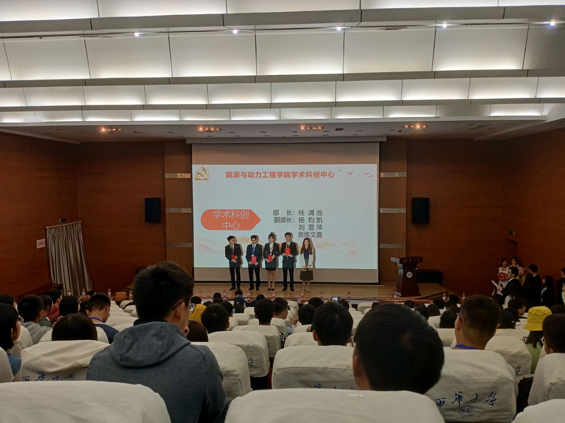 2019年10月12日中午,西华大学能源与动力工程学院第六届团委学生会换届大会在图书馆报告二厅顺利举行。到会的嘉宾有能源与动力工程学院团委书记古羽加、团委副书记肖寒月以及学工办老师,学院团委学生会全体成员、学院附属队伍及兄弟学院各代表们参加了本次大会。