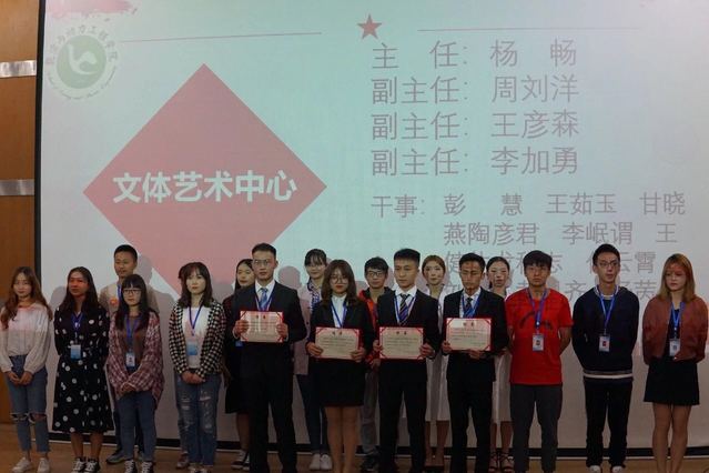 大会开始,全体起立,奏唱团歌。接着由第四届团委学生会主席张旭就2017至2018学年度团委学生会的工作进行工作总结,并对第五届团委学生会提出了建议。随后,第五届团委学生会主席李时春作工作展望。他对未来一年新一届团委学生会的工作提出了六点要求:一、以人为本,培养人才;二、做好材料收集工作,保存好珍贵资料;三、健全学生会的规章制度;四、完善学生会的管理体制;五、积极开展各类活动,使有一技之长的同学得以发挥;六、积极对外交流,向优秀他人,部门学习。然后,团委书记李亚东老师作总结讲话,提出了对新干事们的欢迎,同时感激所有老干事的无私奉献。他对所有团委学生会成员提出了“树立服务纽带,做好服务工作”的期望。紧接着,由李亚东老师,刘宇老师,古羽加老师为第五届团委学生会各组织、部门进行了受聘仪式,颁发了受聘证书。最后,团委学生会新干事进行宣誓,宣誓志愿加入团委学生会,积极工作,服务学院。
