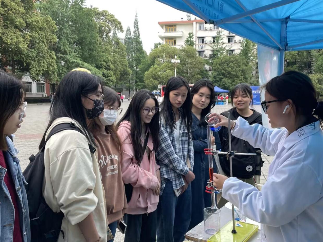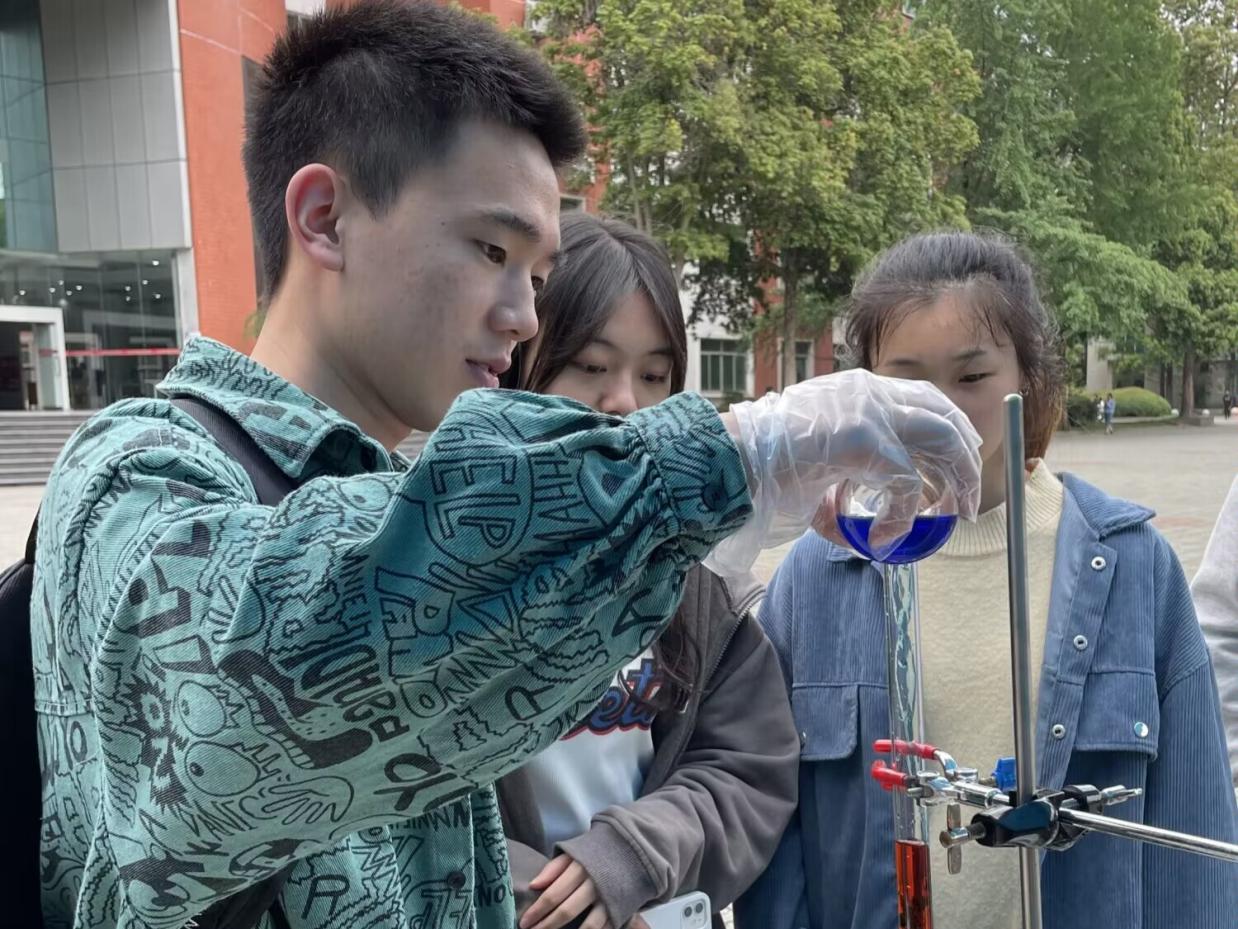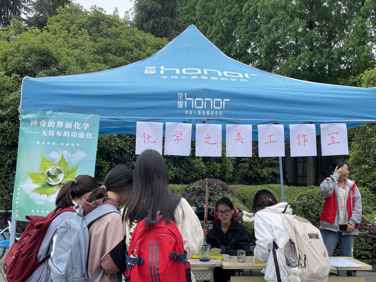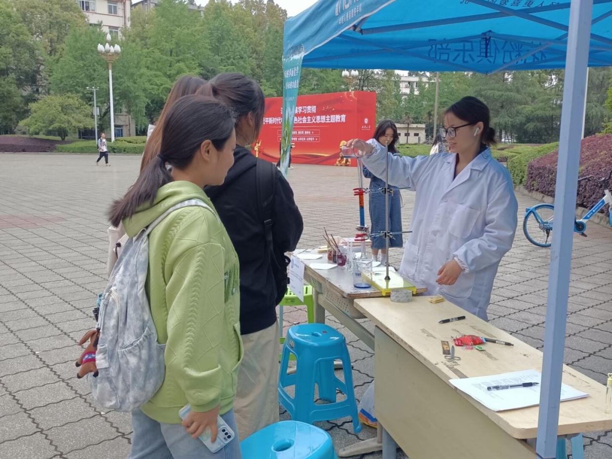 为让同学们更深入走进化学、了解化学,理学院于5月11日在明德广场举办“不负春光,畅游化学”科普活动,由理学院“化学之美”工作室承办。