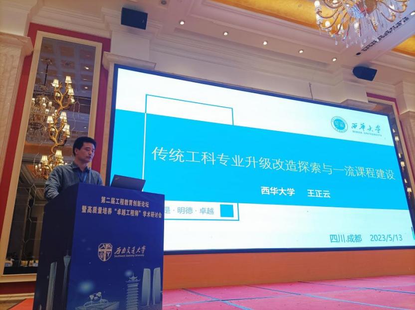 5月11-13日,由中国高等教育学会工程教育专业委员会指导、西南交通大学高等教育研究院主办、教育部跨学科课程教学创新改革虚拟教研室、浙江大学中国科教战略研究院、《高等工程教育研究》协办的第二届工程教育创新论坛暨高质量培养“卓越工程师”学术研讨会在成都召开,会议旨在打造具有中国特色的工程教育创新局面,促进工程教育教学改革,加快探索卓越工程师培养模式变革。来自全国各高校分管学科建设的校(院)长、专业负责人、骨干教师等200余人参会。我校材料科学与工程学院副院长王正云、黄丽宏教授、徐磊副教授参加了会议。5月13日,王正云作了题为《传统工科专业升级改造探索与一流课程建设》的专题报告。