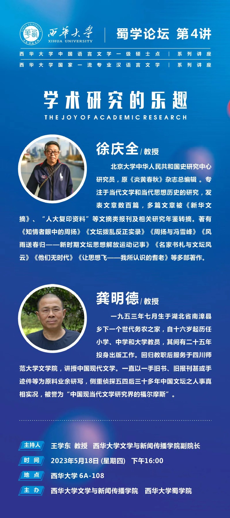 蜀学论坛第4讲|学术研究的乐趣:徐庆全对话龚明德