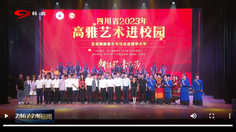 “四川教育电视台(SCTV-8)”6月5日以“四川省2023年高雅艺术进校园雷波民族音乐专场走进西华大学”为题,作了2分46秒的报道。报道截图和视频如下: