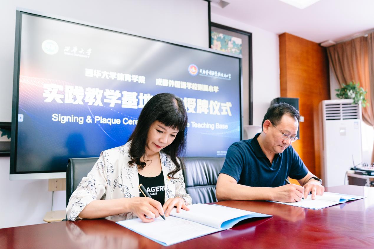6月13日,体育学院与成都外国语学校附属小学共建“实践教学基地”签约授牌仪式在成都外国语学校附属小学(百草路校区)举行。