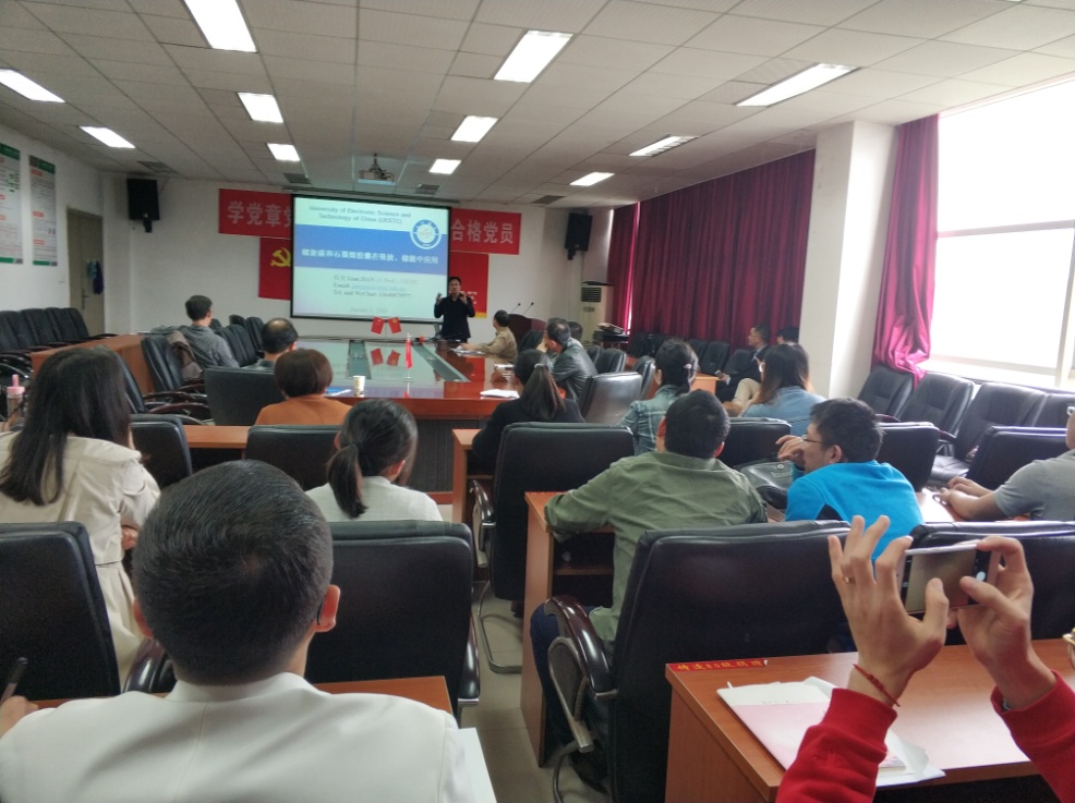 4月11日,材料科学与工程学院举行学术报告会,电子科技大学特聘副研究员简贤博士应邀在5A-427作主题为“螺旋碳和石墨烯胶囊在吸波、储能中应用”的报告。报告会由学院院长栾道成主持,学院副院长金应荣、丁士华,相关学科教师及2017级、2018级研究生参加此次报告会。