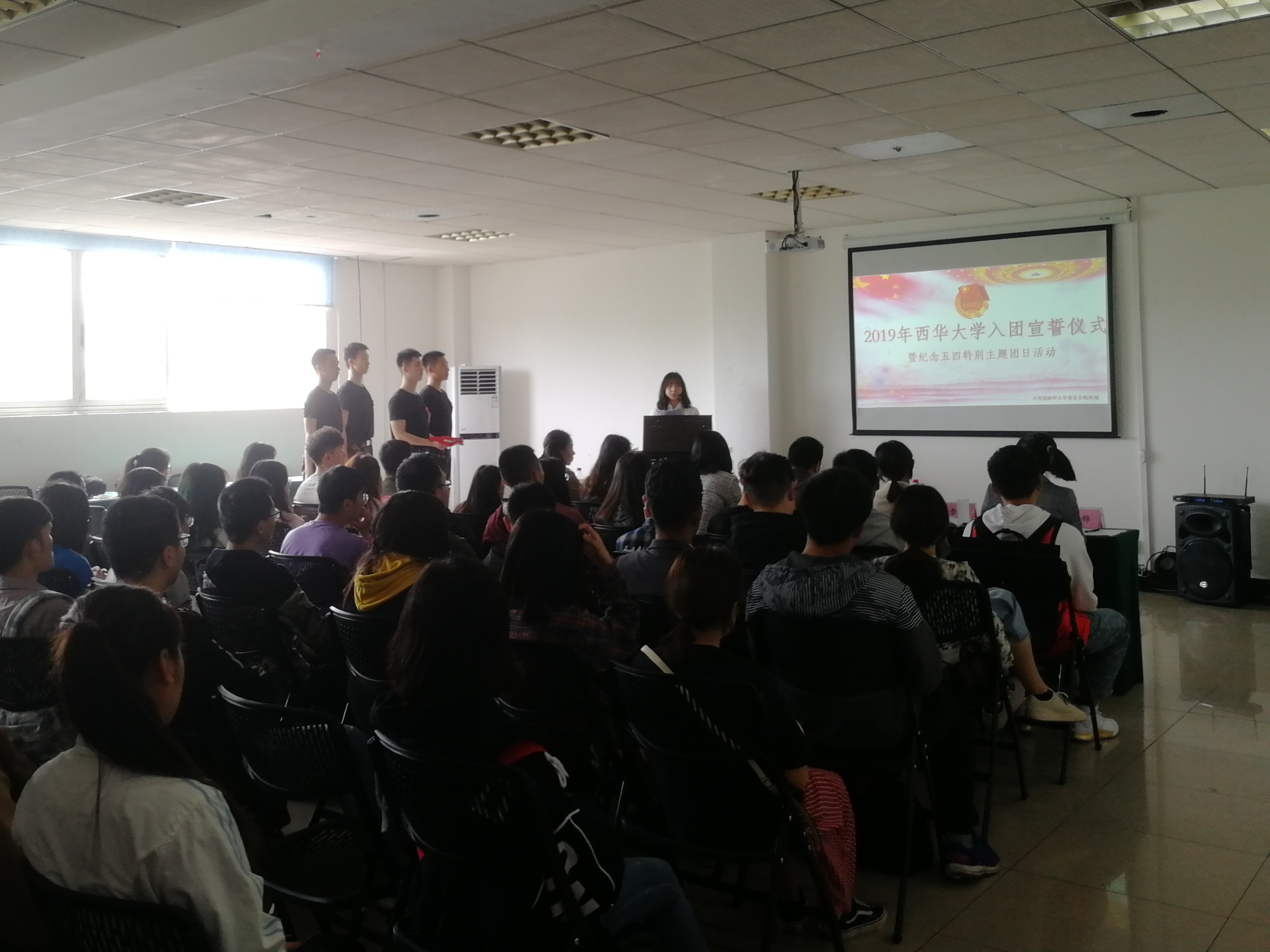 4月16日中午12:30,校团委在学生活动中心四楼成功举办了“青春心向党,建功新时代”纪念五四运动100周年特别主题团日活动——2019年新团员入团仪式。参加本次会议的有校团委副书记张雯欣,校团委兼职副书记刘洪、校团委挂职副书记甘岭芝,校团委老师以及20名老团员代表和57名新入团团员。