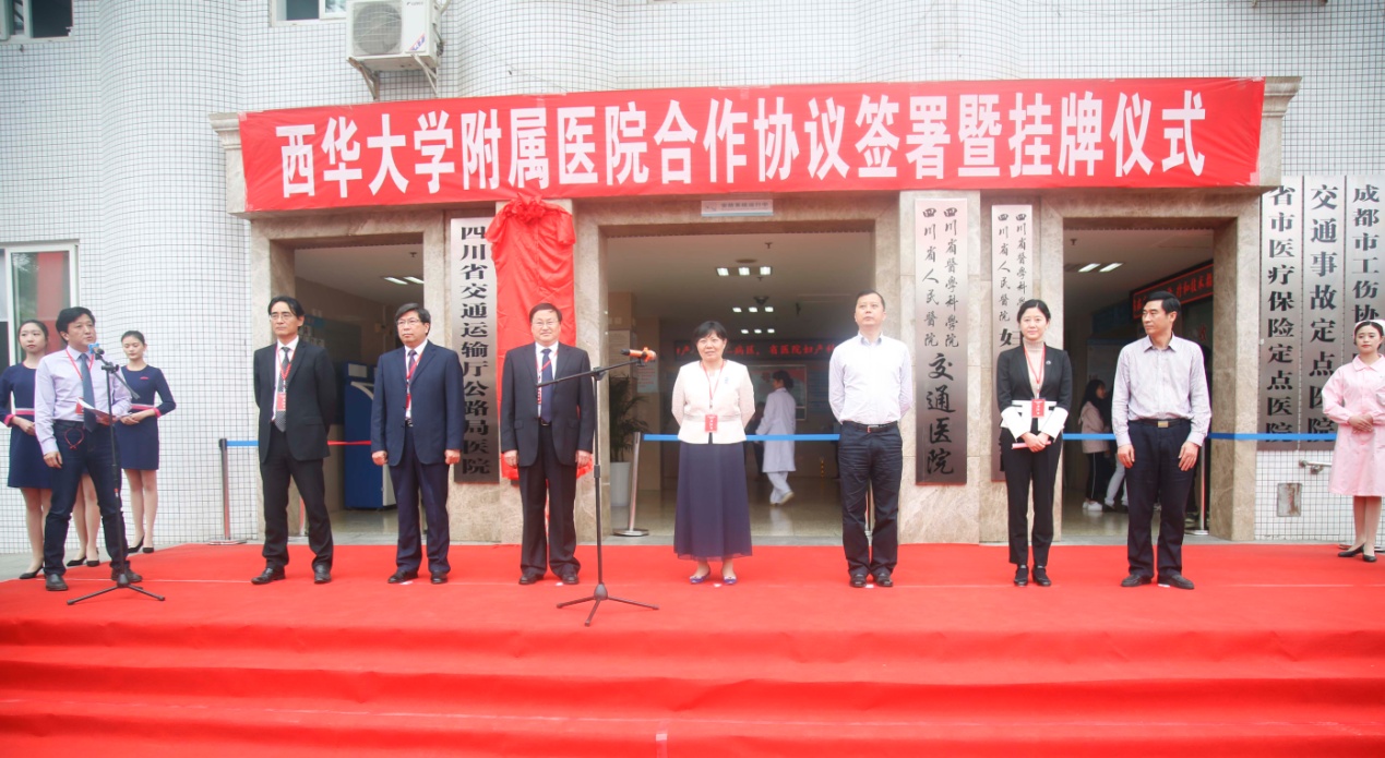 4月18日上午,西华大学与四川省交通运输厅公路局医院合作协议签署暨“西华大学附属医院”挂牌仪式在四川省交通运输厅公路局医院正门举行。