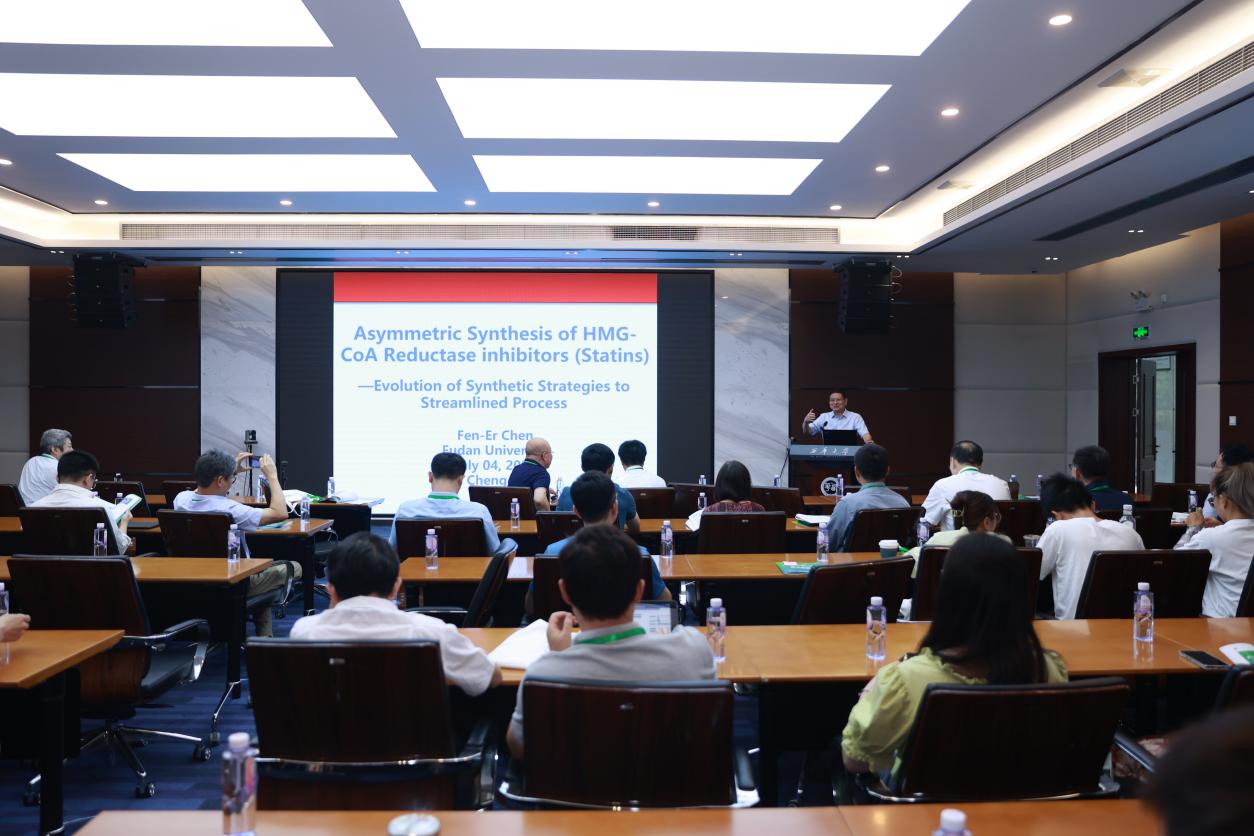校长李秋实出席论坛,副校长郎方年主持开幕式中国工程院院士,复旦大学教授陈芬儿应邀围绕“Asymmetric Synthesis of HMG-CoA Red uctase inhibitors (Statins)”作精彩报告。