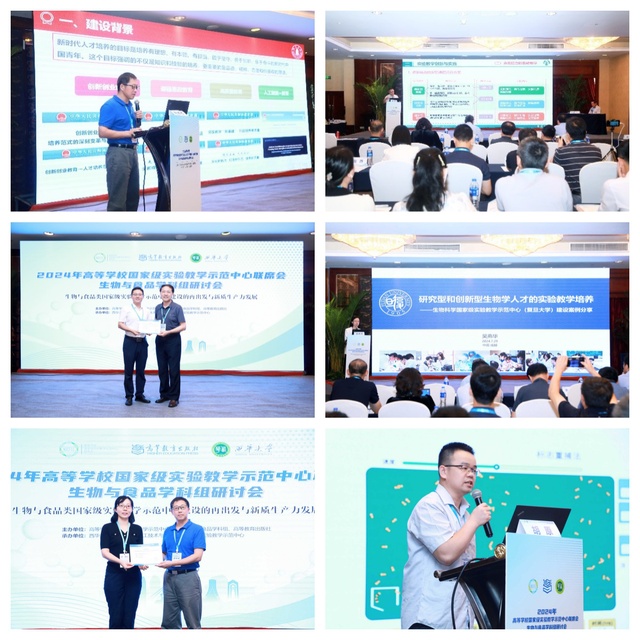 为强化国家级实验教学示范中心的实验实践育人工作,提高人才培养质量,更好发挥生物与食品类示范中心在本学科领域的示范引领、辐射带动作用,7月28日-30日,由高等学校国家级实验教学示范中心联席会生物与食品学科组、高等教育出版社指导,西华大学主办的“2024年高等学校国家级实验教学示范中心联席会生物与食品学科组研讨会”在成都举行,我校现代食品加工技术与质量安全四川省实验教学示范中心教师与来自全国各高校近150名专家一同参加了此次研讨活动。