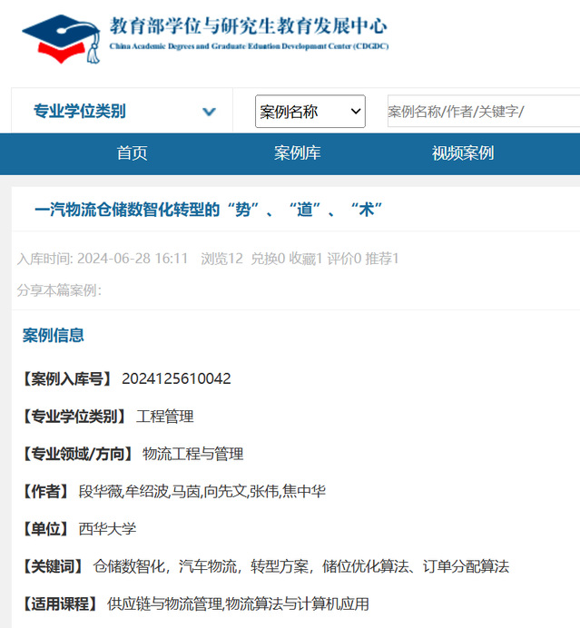 20237月案例征集和评选工作开始,管理学院积极组织专业教师进行案例撰写。段华薇教授主持撰写的教学案例——《一汽物流仓储数智化转型的“势”、“道”、“术”》,先后经过多次案例企业实地调研、撰写、初审、修改、再审等努力,不断对案例内容进行完善,对案例编写进行有效规范,最终成功入选中国专业学位教学案例库。未来,管理学院将进一步推进专业学位研究生教学案例编写和案例库建设工作,继续深化专业学位研究生培养模式改革,有效推动专业学位研究生培养质量不断提高。