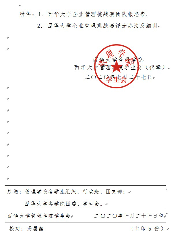 2.评分办法:见西华大学企业管理挑战赛评分办法及细则(附件2)。