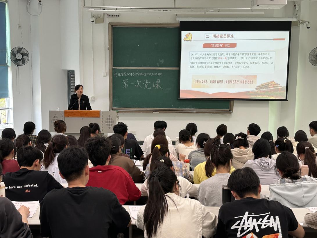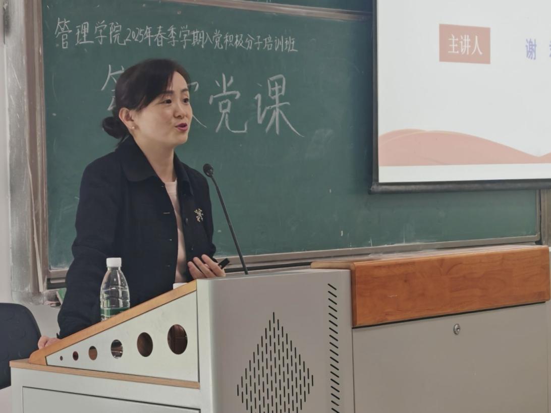 为端正入党积极分子的入党动机,提升同学们的党性修养和思想道德素养,2025年4月10日中午,西华大学管理学院党委副书记、纪委书记谢君在4A-206教室为入党积极分子们讲授“端正入党动机、明确党员标准、以实际行动争取早日入党”专题党课。管理学院入党积极分子培训班指导教师黄婉君出席会议,管理学院2025年春季学期入党积极分子培训班全体干部及学员到场参与本次党课学习。