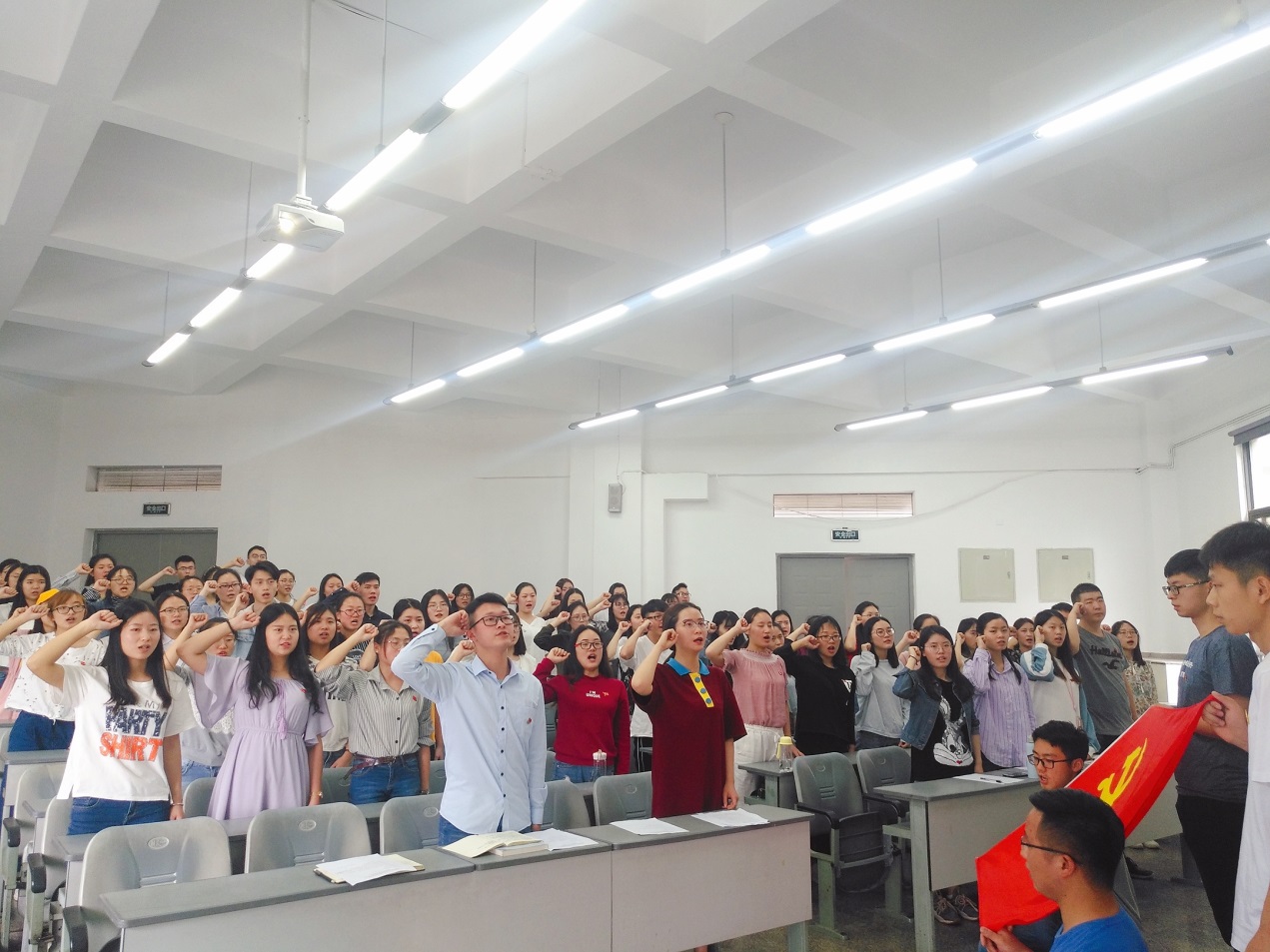 5月2日中午12:20,管理学院新发展党员全体大会暨新党员入党宣誓仪式在5c203举行。学院学生党总支委员、学生第十二、十三、十四、十五党支部书记及全体新发展党员近80人参会。