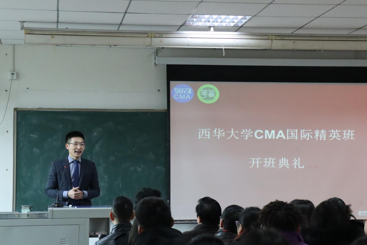 12月30日上午9:00,西华大学CMA国际精英班盛大开班!此次开班受到校领导高度重视,出席本次开班典礼的有:西华大学管理学院院长谢合明、党委副书记兼副院长谢君、西华大学CMA项目组余鹏举、管理学院李萌以及锦拓CMA/淘新知教育联合创始人陈云先生、高校首席代表陈鲲先生、余佳女士,锦拓CMA/淘新知王茹丹女士主持了本次典礼。