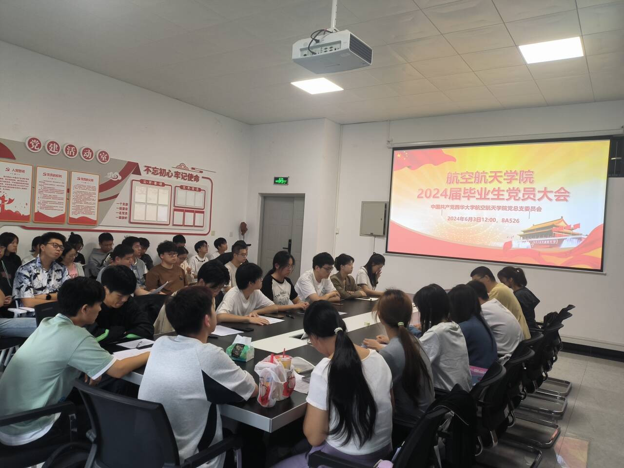 2024年6月3日12:00,航空航天学院本科生党支部于8教526召开2024届毕业生党员大会,开展毕业生党员党纪学习教育暨组织关系转接培训,进一步强化毕业生党员党性修养,做好学院党员管理工作。本次会议由航空航天学院本科生党支部书记刘伟同志主持,全体毕业生党员参加。