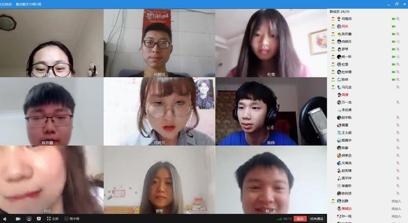 2020年5月9日下午4时,航空航天学院航空航天大类1班以QQ视频的方式开展了“禁毒,防艾”的主题班会,主题班会由班长何橙闵主持。