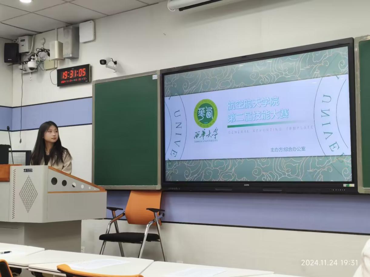 航空航天学院学生会开展的技能大赛于2024年11月17日开始,12月8号正式结束,参赛选手面向航空航天学院团总支学生会全体部员。此次比赛分为初赛、复赛以及决赛,无论在哪场比赛中,部员们都以认真的态度积极比赛,用他们精彩的表现为比赛添上浓墨重彩的一笔。