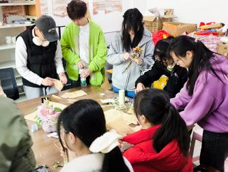 制作干花树的目的是为了让同学们通过制作干花束感受手工的魅力与心灵的宁静。同学们围坐在一起,桌上摆满了色彩斑斓的干花、树枝和各种装饰材料。大家充分发挥自己的创造力和想象力,小心翼翼地将干花插在树枝上,一点点构建出属于自己的干花树作品。在这个过程中,同学们互帮互助,彼此交流制作技巧和心得,沉浸在手工制作的乐趣中,感受着心灵的宁静与平和。