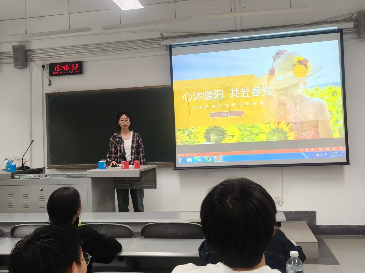 随后,会议重点介绍了春季心理主题活动的整体思路和要求。根据安排,4月中旬至5月期间,各班心理委员需以班级为单位,组织开展一次以“心沐暖阳,共赴春光”为主题的心理健康活动,并要求拍摄照片以及撰写活动总结。活动形式不限,既可以选择室内交流、手工制作、观影讨论等形式,也可以选择户外踏青、团队合作游戏等内容。鼓励各班结合本班实际,创新形式、贴近学生心理发展需求,打造有温度、有深度、有意义的心理活动。