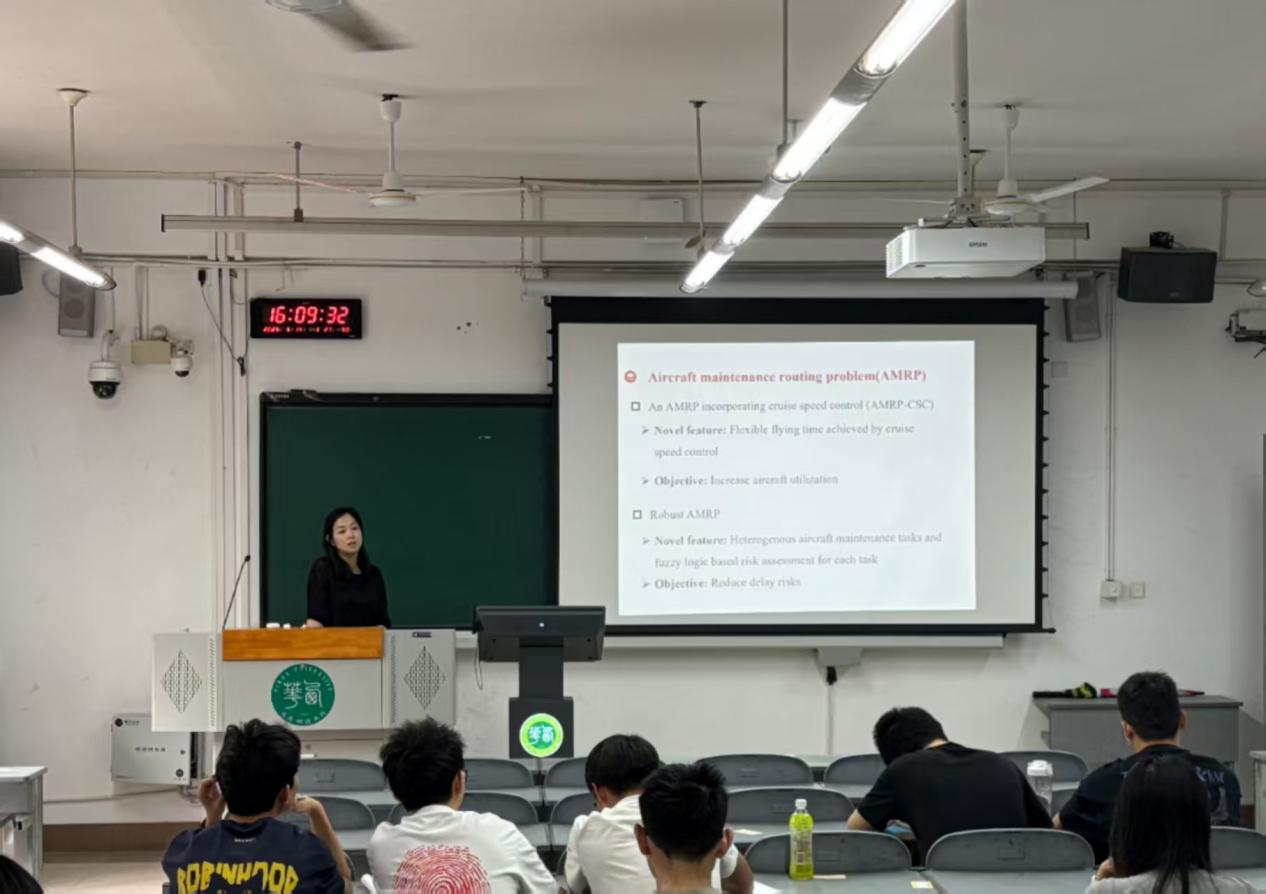 张庆博士是西华大学航空航天学院讲师及博士,在智能优化算法、飞机路径规划、航空运营优化等方面深耕多年,以第一作者发表多篇SCI检索期刊论文和国际会议论文。此次报告中,他围绕飞机维修航线规划问题(AMRP)这一航空运营管理核心议题展开分享。