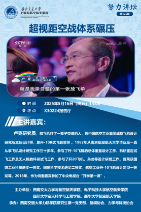 5月16日下午,西华大学航空航天学院组织师生代表赴西南交通大学听卢克《超视距空战体系碾压》专题讲座,辅导员刘伟、教师代表及本硕学生共5人聆听,厚植家国情怀,筑牢理想信念根基。