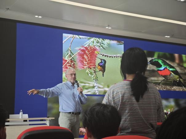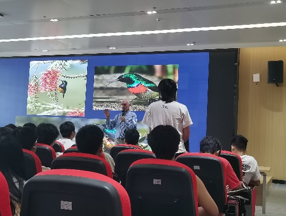 讲座伊始,Robert Dudley教授以一段对中国文化与技术发展的观察开启了这场跨学科对话,教授指出在其在过去的研究中,深刻感受到中国不仅是现代科技的追赶者,更是许多创新灵感的‘源头活水’。” Dudley教授特别提到,他在研究蜂鸟飞行时,也观察了中国众多鸟类的飞行特点,深刻理解‘自然启发技术’的本质——它不仅是生物原型的复制,更是人类对自然规律的文化共鸣与再创造。”这一番“文化序曲”瞬间拉近了在场师生的距离,也让后续的技术讲解更具人文温度。