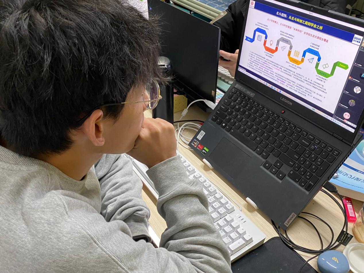 随后,丘扬老师详细地讲解了第十三届“北斗杯”全国青少年科技创新大赛大赛的意义和赛制。邱老师从“北斗杯”的历史背景引入主题,让同学们感受到中国航天人艰苦奋斗、勇于创新的精神。他说科教兴国、培养人才、推动航天事业是“北斗杯”的目的,同时也是大赛的任务所在,实行“三位一体”(科学普及,创新大赛,人才培养三方面)是大赛的根本。邱老师鼓励同学们积极参与“北斗杯”大赛,因为“北斗本”不仅有着国家政策引导,而且更加具有权威性,在航天领域具有很高的影响力。