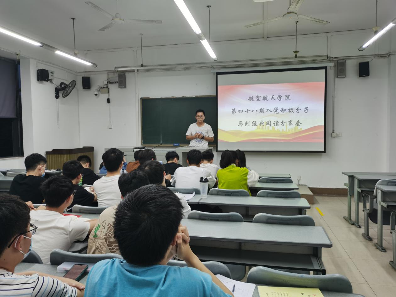 4月10日晚上19:00,航空航天学院第四十八期入党积极分子党校培训班全体成员在党校班长杜博汶、彭言章的带领下在5B-212举行了共读马列经典阅读分享会。