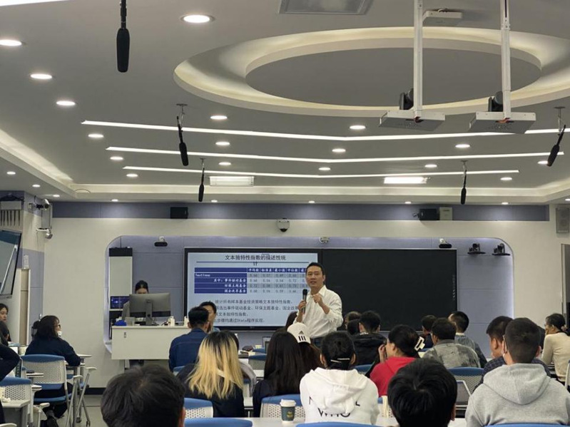 首先,2020级应用经济学专业周欣叶同学分享了她的文章《基金投资策略差别化的动因及其后果——基于文本分析的证据》,通过对论文研究内容与相关文献、基金投资策略差别化程度的文本分析方法、Doc2Vec模型的实现过程以及主要结论四个方面的汇报,介绍了影响基金投资策略差别化的因素和衡量方法以及对业绩的影响结果。随后老师和同学们就投资策略差别化体现在什么地方?差别化指数怎么建立的?研究的创新点是什么?等问题进行了激烈探讨。