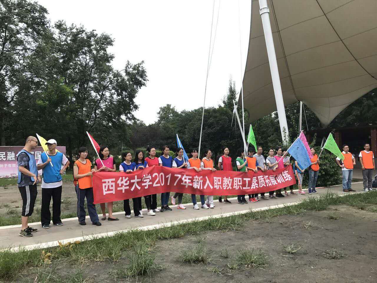 8月27日上午8:00,新入职教职工前往郫县唐昌镇妈妈农庄进行素质拓展训练。在专业培训师的引导下,所有参训老师在一起玩破冰游戏活跃气氛,后分为7支队伍,通过选队长、取队名、画队旗、喊队训、唱队歌等环节,队员们快速融入各自团队。随后,以队内合作结合队间比拼的方式,各队开展了“抢滩登陆”、“呼吸的力量”、“珠行千里”和“众人划桨开大船”等项目。通过素质拓展,增进了新教师之间的相互了解,培养了大家的团队合作意识,激发了大家的潜能和意志。
