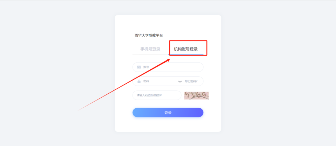 2、点击机构账号登录,账号为学号,密码为edu@身份证后六位(若最后一位是X需要大写)。