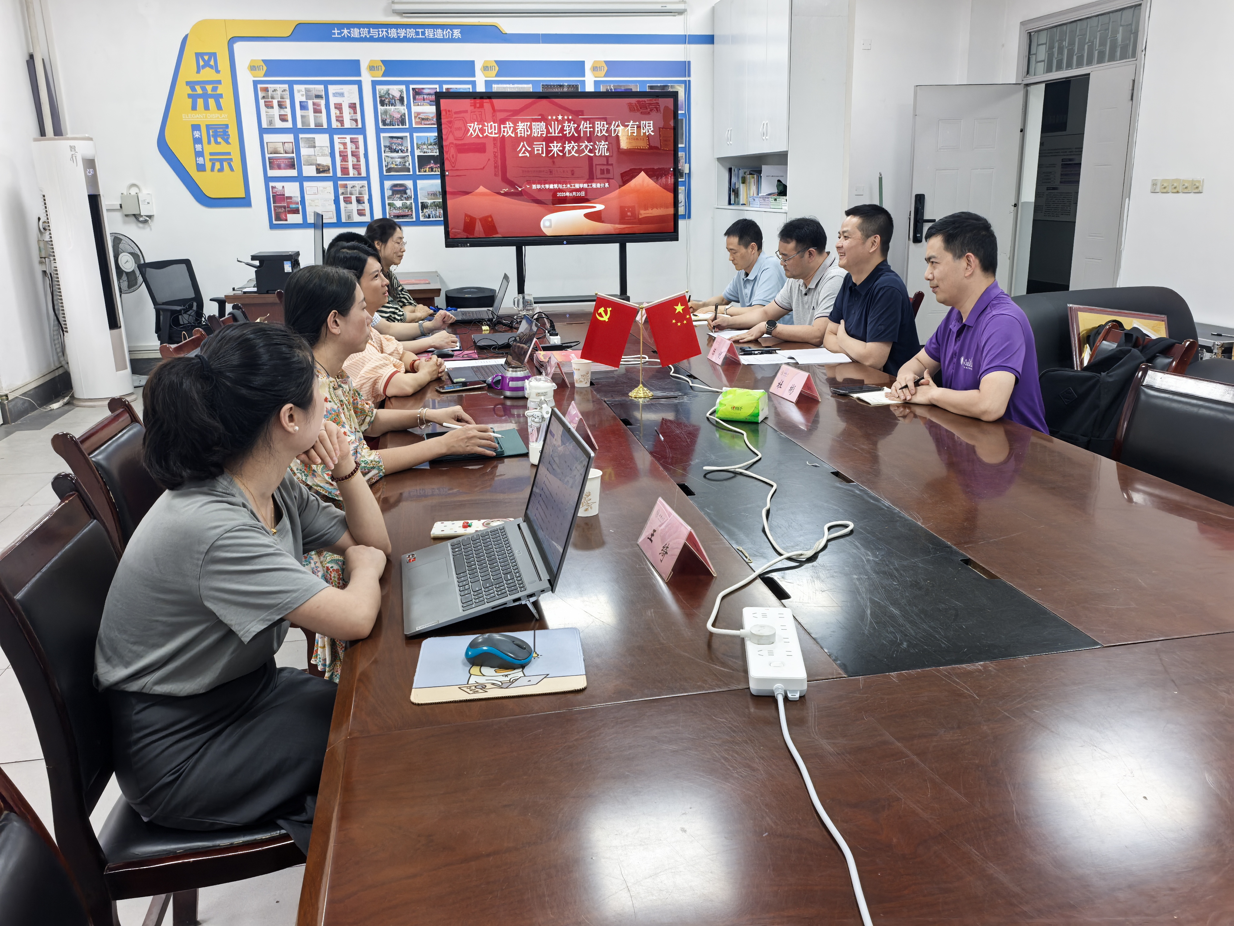 6月20日下午,成都鹏业软件股份有限公司副总经理陈锐一行来建筑与土木工程学院在6D-207B开展合作交流。学院副院长李海凌,工程造价系主任肖光朋、副主任王绮,工程造价系支部书记郭丹丹以及骨干教师卢永琴、张文婷,鹏业软件公司算量产品部总监郎云飞、算量产品部助理总监黄剑、鹏业软件计价部总监杜彬等出席座谈会。
