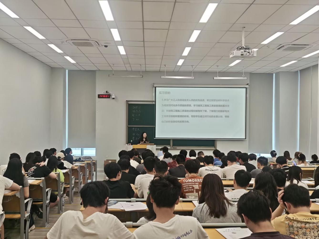 针对实习场所选择,霍老师强调需遵循专业对口、就近稳定、管理先进等原则,建议结合就业意向,可选择设计、业主、监理等单位,且优先考虑涵盖钢筋混凝土结构、多层砖混结构等典型项目的实习场景,便于全面学习施工管理要点。此外,霍老师对实习内容进行拆解,从看懂建筑与结构施工图,到参与施工组织管理、作业设计、预结算编制等,明确各环节任务,引导同学们在实践中提升专业技能。 最后,霍老师给同学们分配了具体的实习任务:每天写好实习日记,对组织的专业参观,在专业报告里面都要详细记录并加以整理,并且在实习结束,交一份书面报告。选择分散实习的同学,老师们强调需主动联系实习单位后,第一时间对接实习指导教师,确保全程接受专业指引;要严格遵循实习大纲与计划,严肃对待任务,重视从实际场景中学习,按时完成实习作业并高质量撰写实习报告;同时,也要合理规划实习生活,兼顾政治学习与文体活动,实现专业成长与个人综合素养提升的双向奔赴。