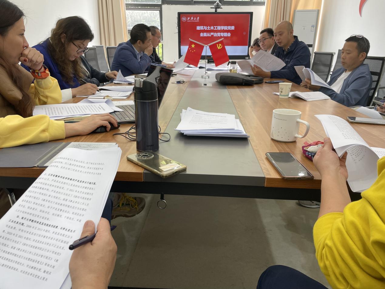 5月11日上午,建筑与土木工程学院在6D-105会议室召开全面从严治党专题会议。会议深入学习贯彻党的二十大及二十届中央纪委二次全会精神,贯彻落实省纪委十二届二次全会、2023年全国全省教育系统全面从严治党工作会议精神,并传达学习了西华大学2023年全面从严治党暨纪检监察工作会议精神,并对下一阶段学院全面从严治党工作进行安排部署。学院党委书记顾鸿飞作了专题发言,学院党委委员、专职组织员、各系部负责人参加会议,会议由学院党委书记顾鸿飞主持。
