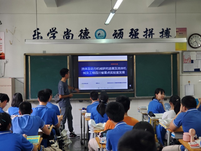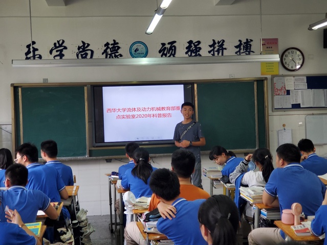 2020年,新冠疫情肆虐全球,国内的部分校园实行了封闭式管理,这使得同学们的课外活动及知识拓展减少。在此特殊时期,我实验室(流体及动力机械教育部重点实验室、流体机械及工程四川省重点实验室)开展了“科学普及走进中小学”的活动。2020年8月2日下午,重点实验室走进成都市实验中学开展科普展示及科普报告。实验室科普助理宣传员向博组织开展了本次活动,并结合实验室现有的实验设备,为同学们讲解了相关知识。宣传员借助泵体的简略示意图,清楚明了的阐述了泵体的工作流程和工作原理,同时还为同学们列举了相关的案例,使同学们理解更为透彻,影响更为深远。