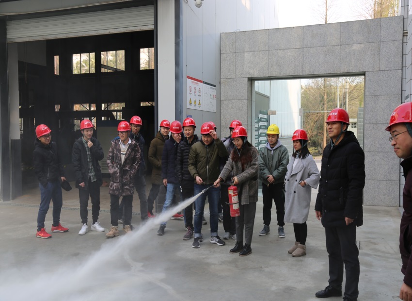 为确保实验室安全,实验室组织研究生进行实验室应急预案演习,进一步明确实验室安全疏散图、对紧急、重要事项和重大突发事件的处理方法进行加强学习等,最后组织学生进行灭火器的培训学习,并指导研究生进行实际操作。