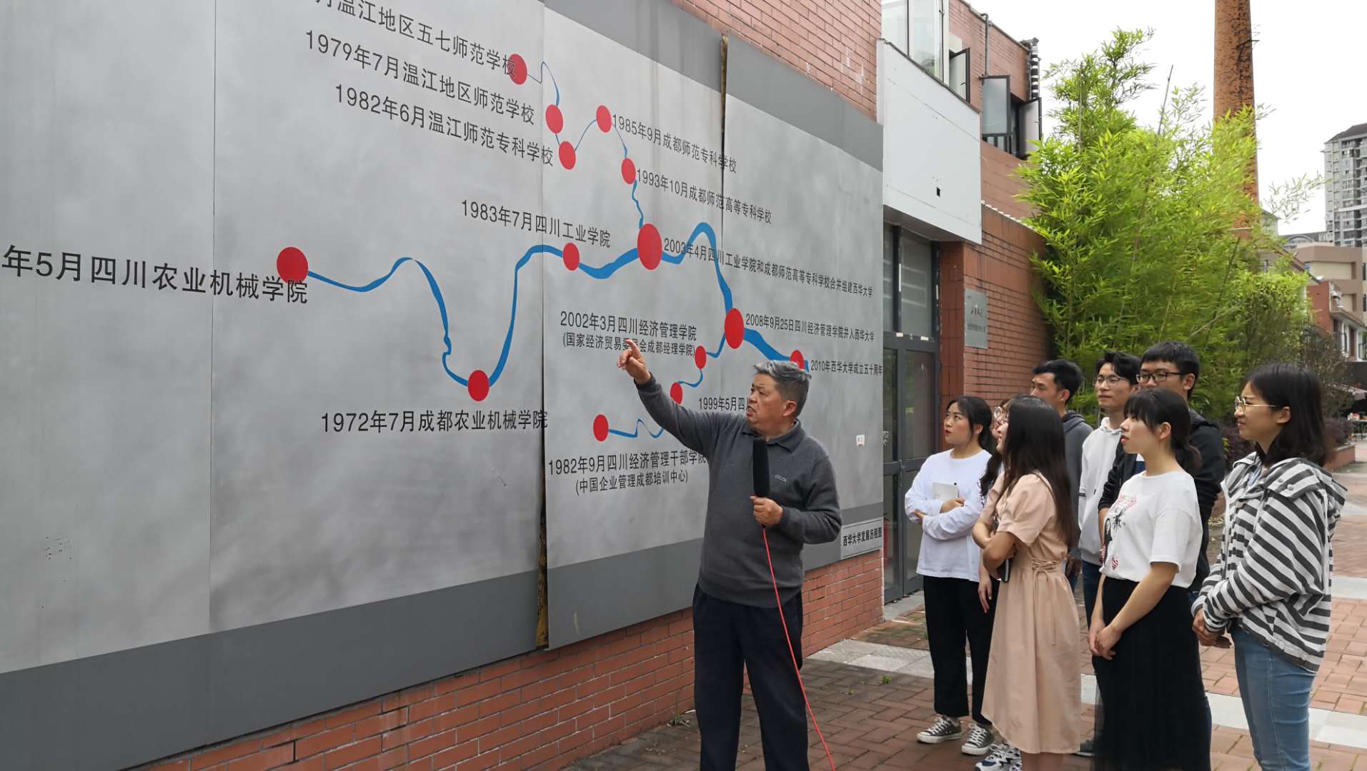 学校原党委书记秦昌明教授为采访的同学讲述西华故事