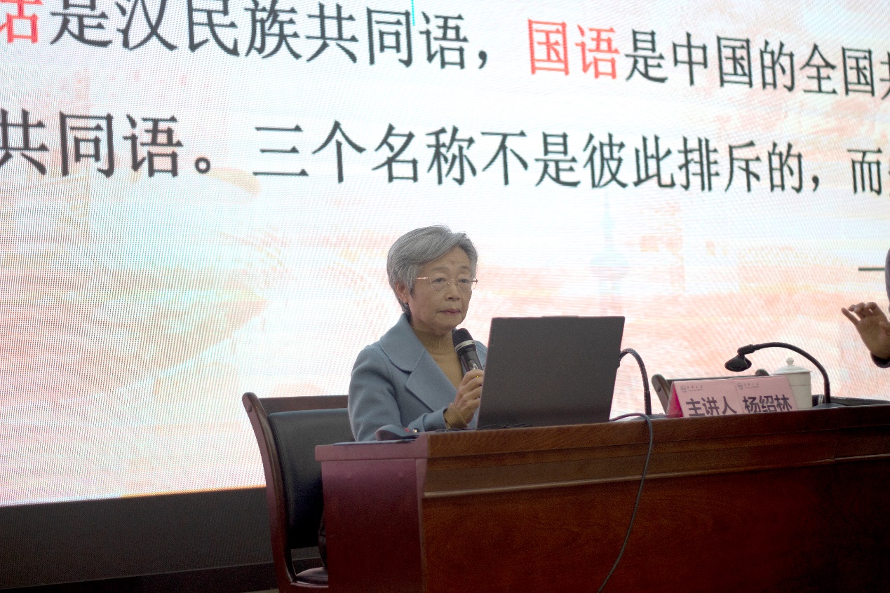 我校退休教授杨绍林受邀作题为《推广普通话 奋进新征程》的讲座。杨教授以风趣幽默的方式深入浅出地阐述了普通话的历史和演变、我国各地域之间的语系分布状况,以及国家为普及普通话所做的工作,强调了在全球化背景下,从国家战略层面到学生职业发展,讲好普通话对于大学生都至关重要,鼓励学生在大学期间注重语言修养,努力提高普通话水平。杨教授与学生们积极互动,提问、辨音和集体朗诵等环节穿插其中,整个讲座将“‘普’雅言风,‘通’华夏情,‘话’中国梦”的主题贯穿始终。现场掌声、欢笑声不断,新生们不仅拓展了知识面,也明白了学好、讲好普通话的重要意义。