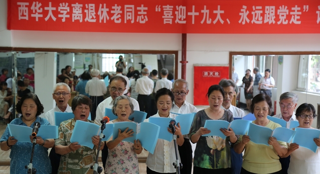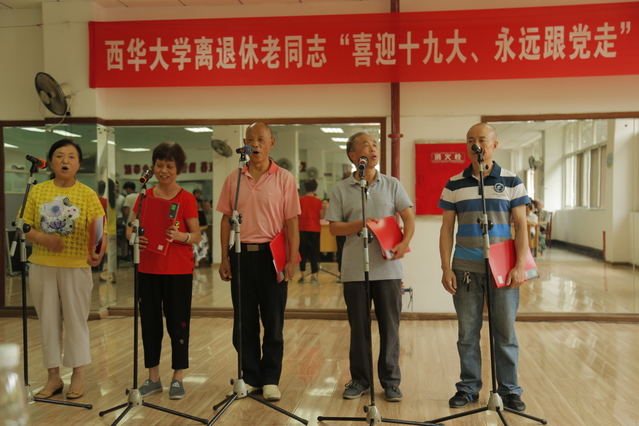 “人老了,意志不能衰退。退休了,党性应该更强。生活中要体现出对理想的追求,先锋队的力量不能只停留在口头上……”6月7日下午,我校夕阳红老年活动中心一片欢声笑语, 离退休党总支和离退休工作处共同举办的西华大学离退休教职工“喜迎十九大、永远跟党走”诗歌朗诵比赛在此举行。