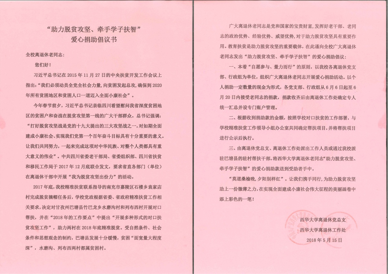 “助力脱贫攻坚、牵手学子扶智”爱心捐助倡议书