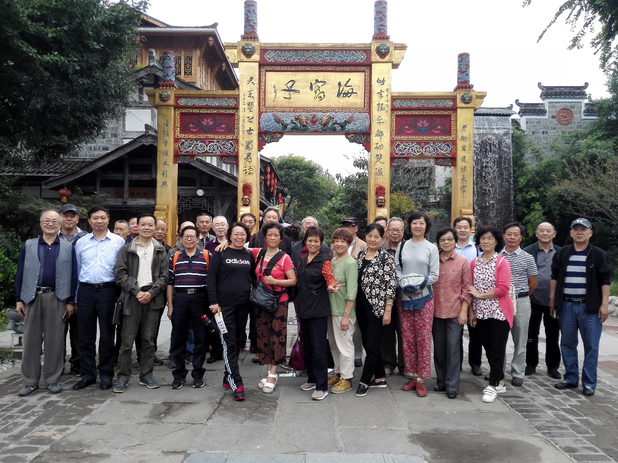 上午,老同志们首先来到海窝子古镇参观,古镇于5•12汶川大地震后重建,重建后的海窝子被打造成“生态田园养生古镇”。古镇倚龙门山脉,居湔江河畔,建筑和景观融合川西民居元素,重视功能分区和视觉形态转变,高低错落,进退有致。