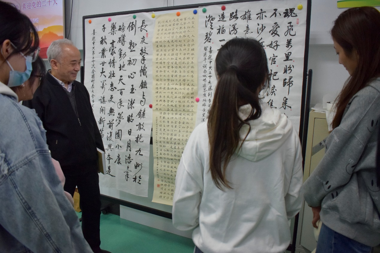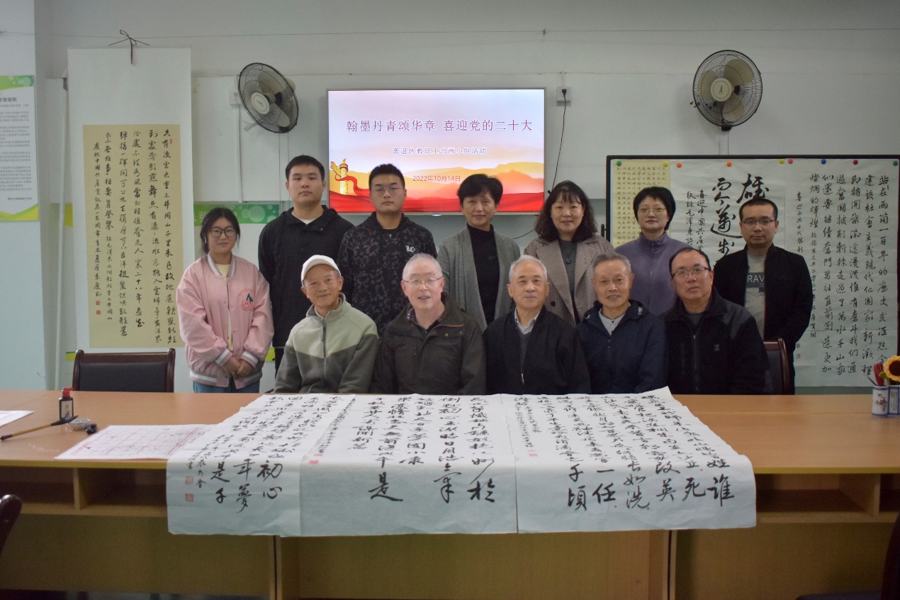 10月14日,离退休党委开展了以“翰墨丹青颂华章 喜迎党的二十大”为主题的离退休教职工书画小组活动,活动特邀我校书画协会的青年学子参加。老少两代人欢欣鼓舞,用手中笔,心中情挥毫泼墨,以书画作品表达奋进新征程,建功新时代,喜迎二十大的心声。这些作品形式多样、内容丰富、主题鲜明,集思想性、艺术性、观赏性于一体,表达了对党的无限热爱和美好祝愿。