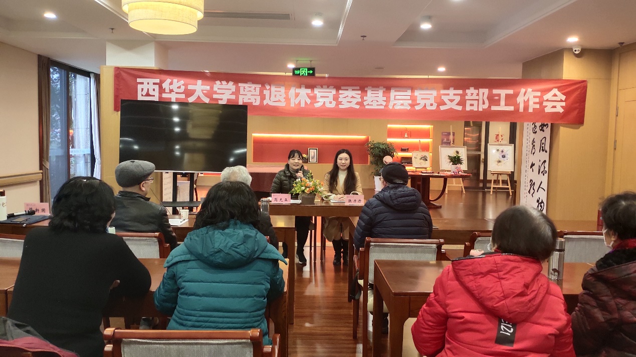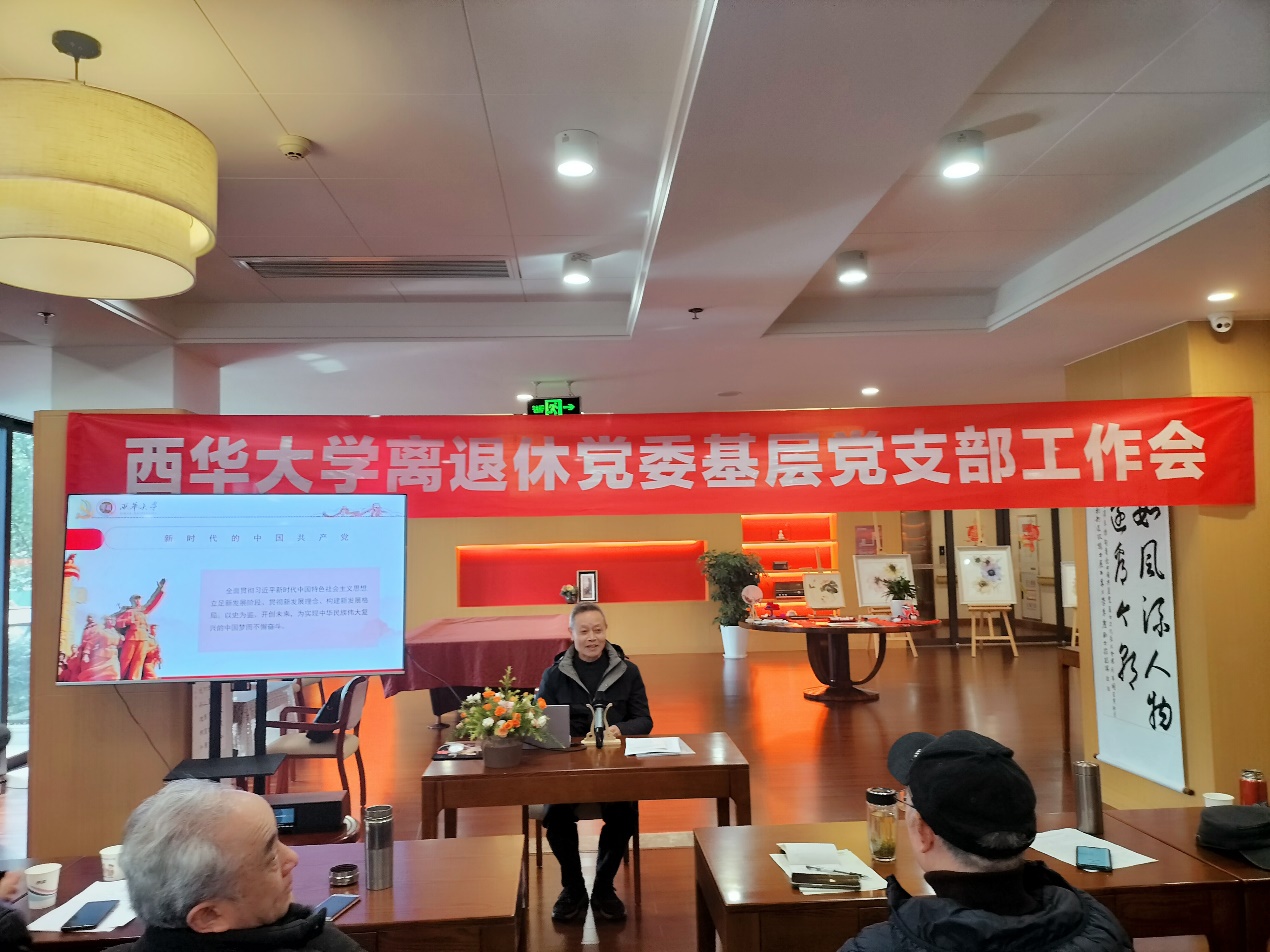 为深入学习贯彻党的二十大精神,筑牢基层党组织坚强战斗堡垒,12月8日,离退休党委在青城颐养中心召开基层党支部工作会议。离退休党委书记、离退休工作处处长芮光正主持会议,西华大学党委学习宣传党的二十大精神师生巡讲团成员、马克思主义学院薛新国教授受邀参会并作专题报告。校党委组织部,离退休党委全体委员、各基层党支部全体支委、老同志代表及离退休工作处全体工作人员参加会议。