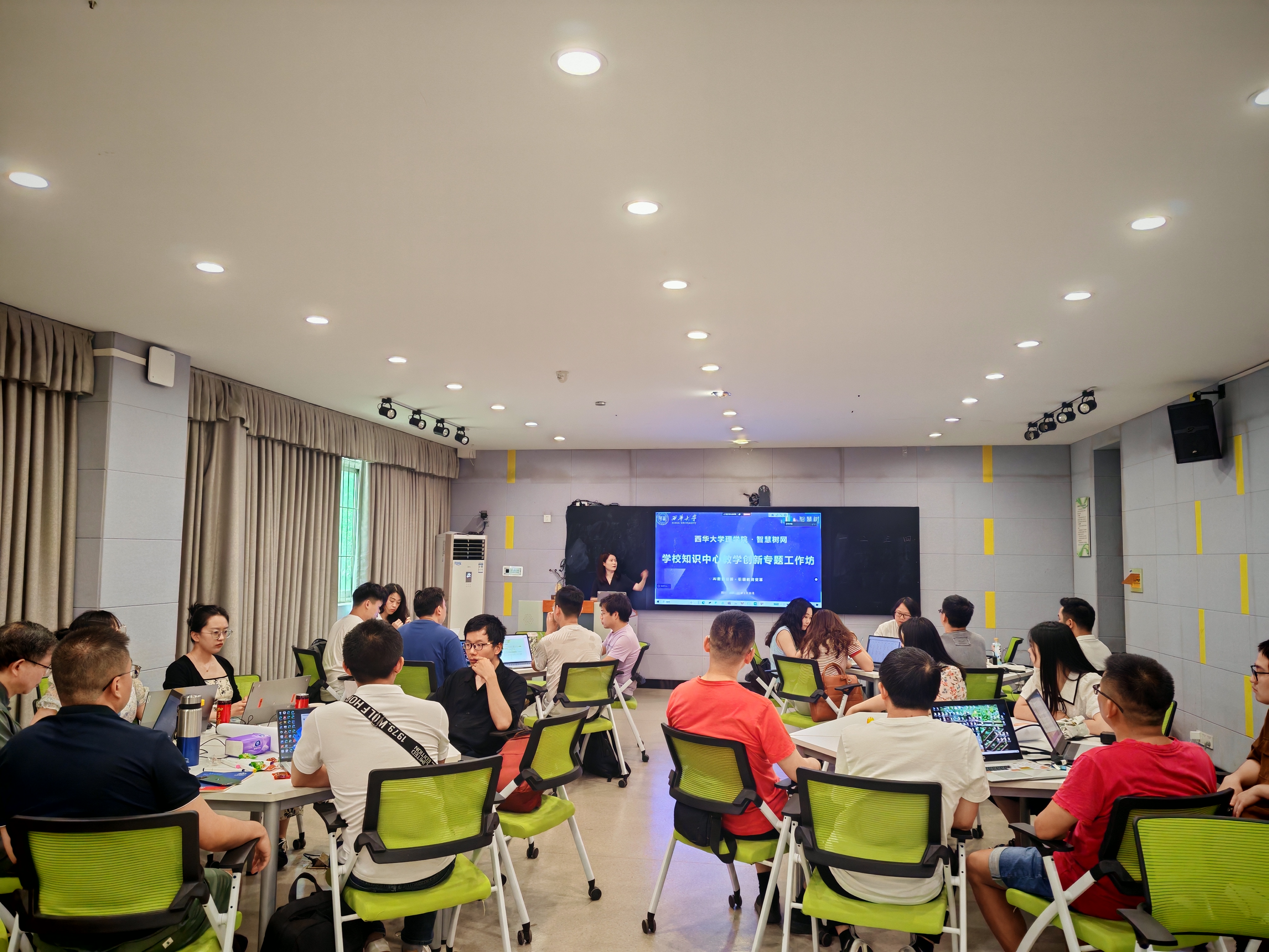 2025 年 5 月 22 日,西华大学物理学科在 3E105 教室举办了知识创新中心应用工作坊,致力于推动物理学科教学与数字化技术的融合,探索创新教学模式,提升教学质量。工作坊中,在智慧树金课咨询师徐乐老师和李佳欣老师引导下,教师们分组开展活动。首先是手绘课程框架脑暴会,大家围绕物理学科核心课程内容进行头脑风暴,用手绘形式搭建课程知识框架。这一环节帮助教师厘清课程知识点间的关联,为后续教学资源建设提供清晰思路。