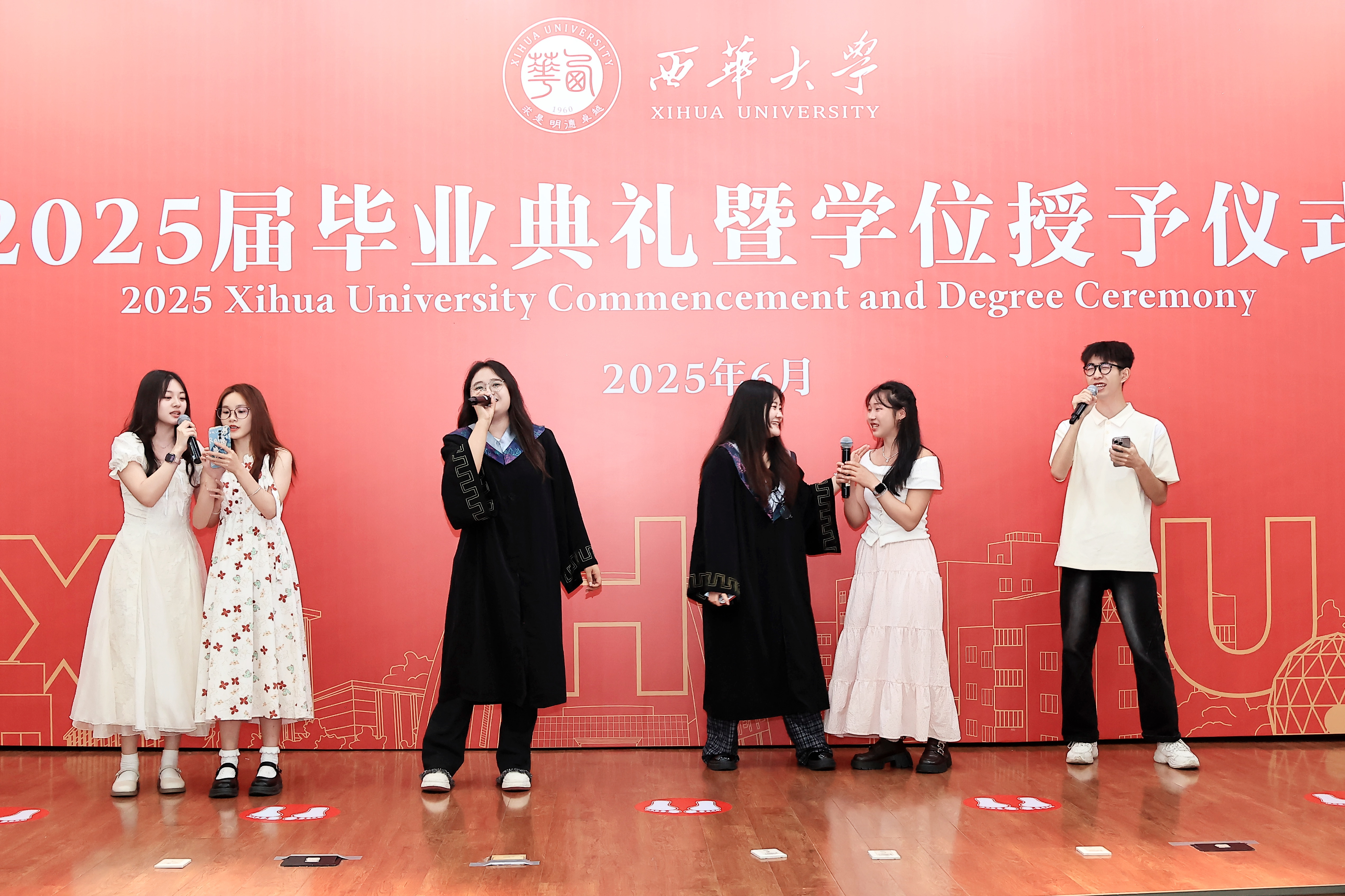 在仪式接近尾声时,特别安排了毕业生歌曲串烧环节。同学们纷纷走上舞台,用动听的歌声抒发对母校的眷恋、对同学的不舍以及对未来的憧憬。一首首青春洋溢的歌曲,将现场气氛再次推向高潮,歌声中饱含着毕业生们对大学生活的美好回忆,也传递着他们迎接未来挑战的坚定信心。