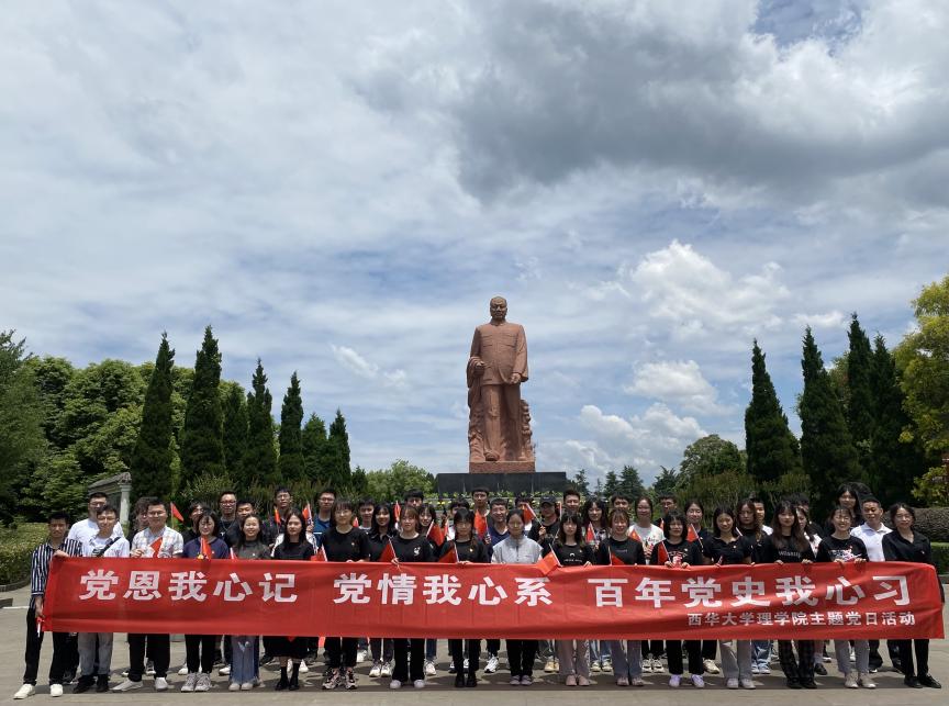 2021年5月16日,理学院学生党支总书记、党建服务工作站指导老师刘伟,理学院党委委员、化学专业学生党支部指导老师杨玉强,以及党建服务工作站指导老师、信息与计算科学专业党支部指导老师谭佳德带领理学院党建服务工作站成员,理学院各专业党支部入党积极分子代表,以及理学院团委学生会主席团代表前往四川省资阳市乐至县陈毅故里举行了党史学习教育活动。