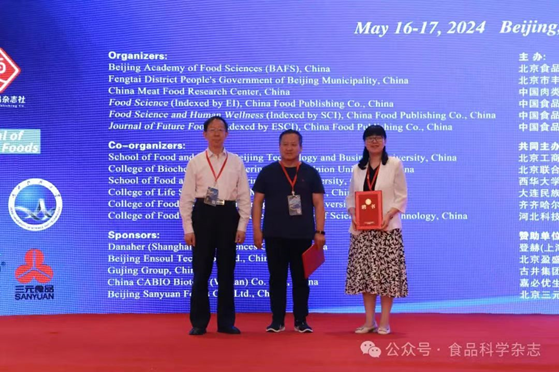 我校作为主办方之一,食品与生物工程学院率队参加了会议。会上,孙宝国院士向唐洁教授颁发了《食品科学》杂志编委证书。唐洁教授主持了发酵与食品微生物专场的学术报告。唐洁教授、饶瑜教授、邢亚阁教授在发酵与食品微生物、农产品储藏和食品安全检测等论坛作了特邀学术报告,硕士研究生徐驰在研究生论坛作学术报告。