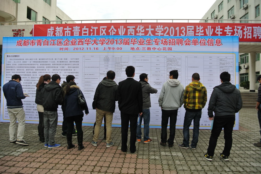 继校友专场招聘会后,11月16日上午9:00,成都市青白江区企业专场招聘会在三教中心花园