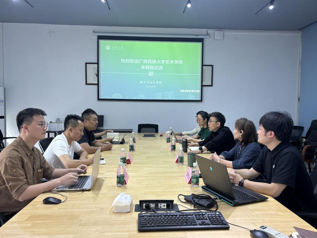 5月15日,广西民族大学艺术学院副院长李俊、环境设计系主任刘海伟一行来美术与设计学院调研交流。院长孟凯宁、副院长黄静及相关专业负责人陪同调研。