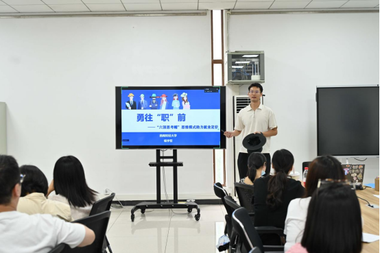 杨宇哲老师通过《勇往“职”前》示范课,现场演示“六顶思考帽”思维模型在就业指导中的运用。他深入阐述游戏化教学实施步骤,结合情景模拟、角色扮演等互动环节,将职业定位、面试技巧等专业知识转化为沉浸式学习体验。此外,杨老师还分享了他在课程设计方面的宝贵经验,从明确课程目标到优化教学内容,再到创新教学形式,为辅导员们在课程建设和就业指导方面提供了新的思路和方法。